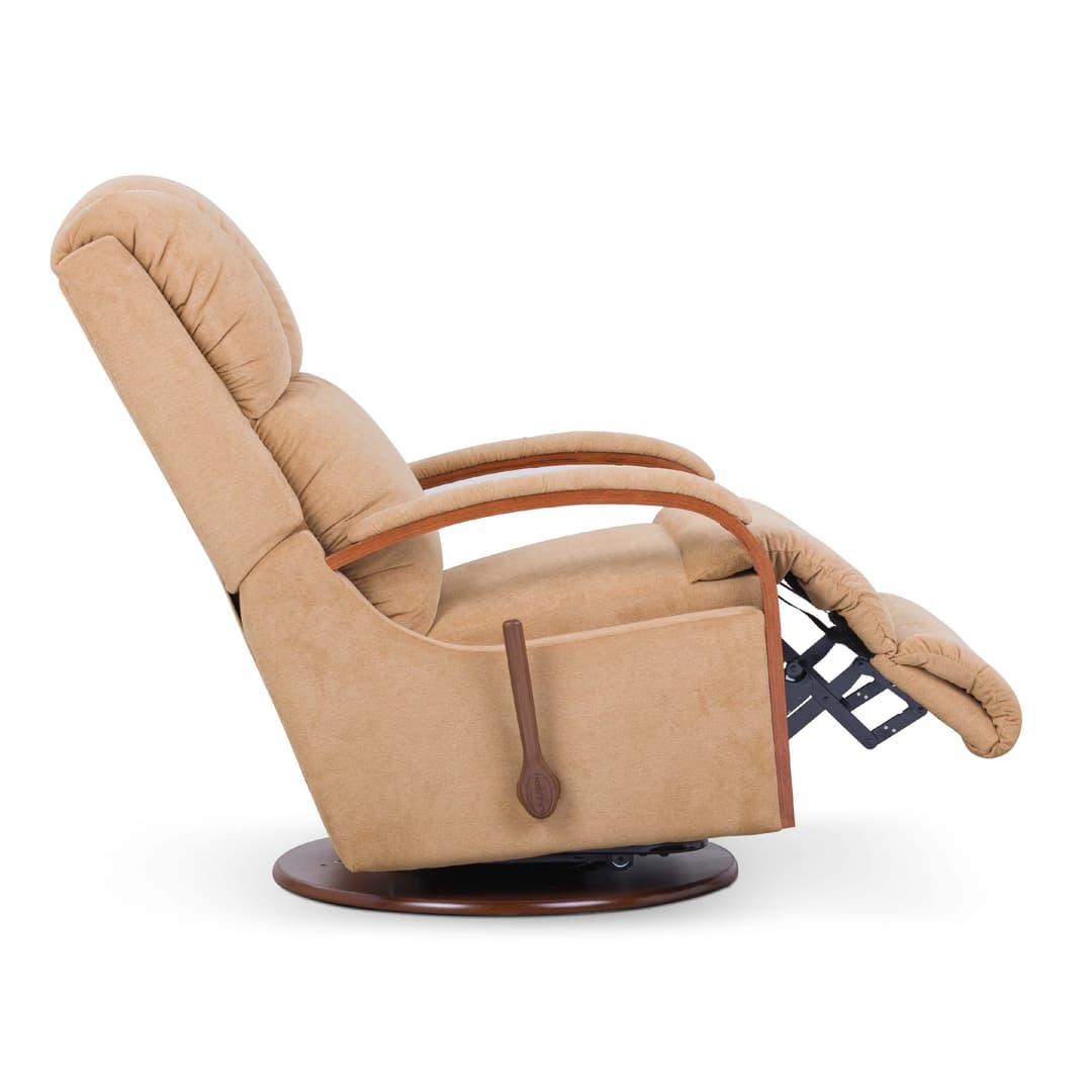 Designed for smaller rooms, the Harbor Town gives you the comfort of a recliner with a lighter silhouette and a sleek, stylish frame that's truly transitional. It features a channel-stitched back, a cushioned headrest and decorative bentwood arms topped with pillow-like padding. Simply use the convenient handle on the outside arm to raise the legrest for reading, relaxing or watching TV. When you’re not reclining, it’s a relaxing rocker with a smooth, graceful motion.
