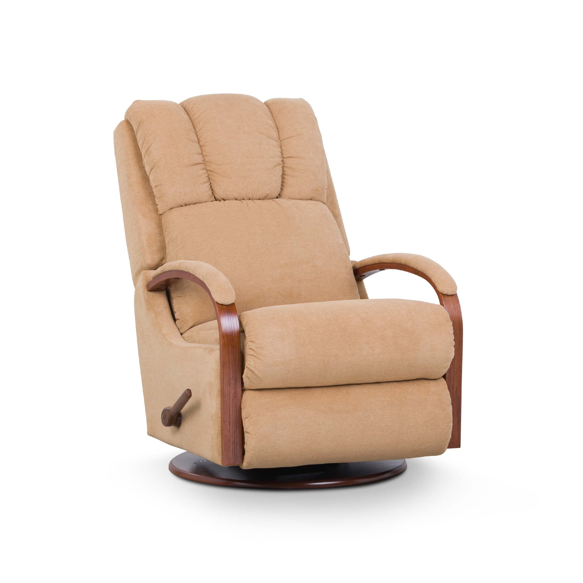 Designed for smaller rooms, the Harbor Town gives you the comfort of a recliner with a lighter silhouette and a sleek, stylish frame that's truly transitional. It features a channel-stitched back, a cushioned headrest and decorative bentwood arms topped with pillow-like padding. Simply use the convenient handle on the outside arm to raise the legrest for reading, relaxing or watching TV. When you’re not reclining, it’s a relaxing rocker with a smooth, graceful motion.